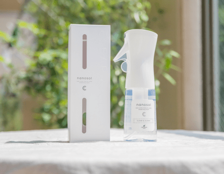 WEBサイトナノソルCCは、光で働き続ける光触媒スプレーです。吹きかけた後も清潔な状態が続くため、除菌の手間や不安を減らし、安心で心地よい空間づくりをサポートします。